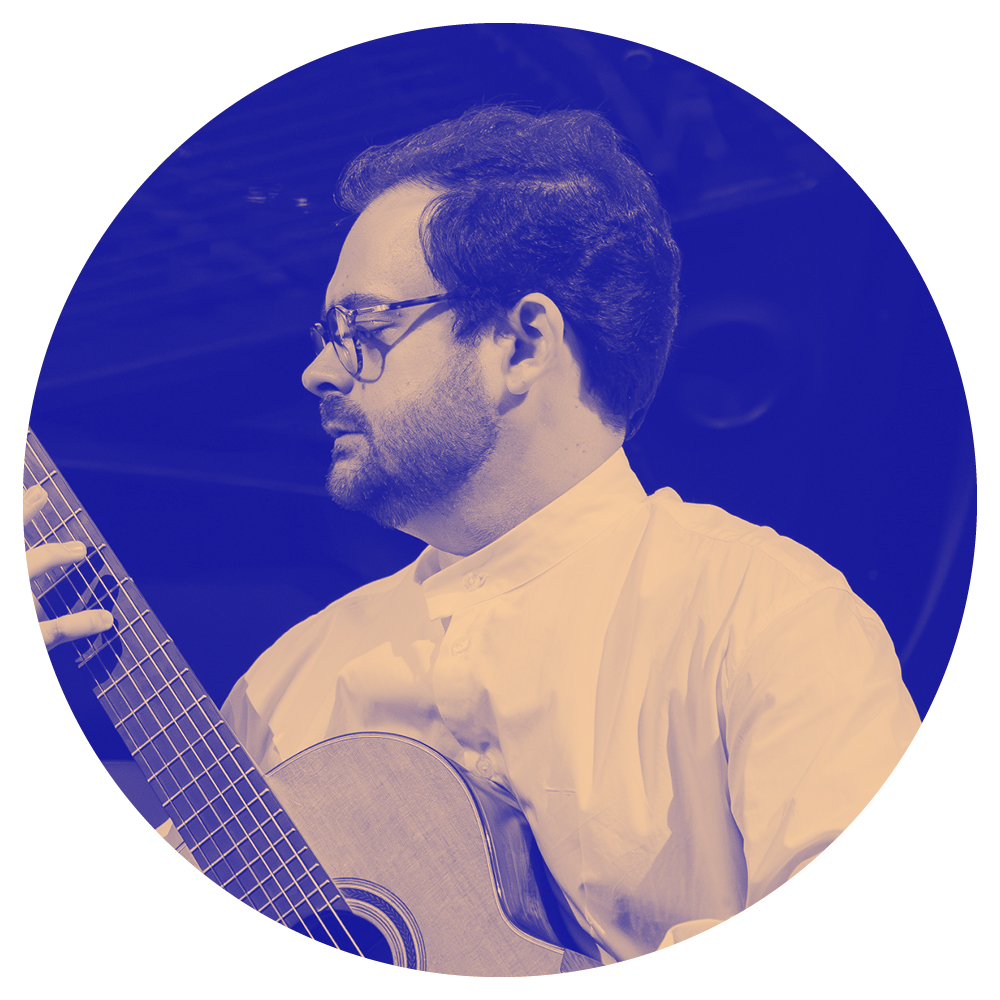André Cardoso was born in 1980. He attended the Alves Martins Secondary School in Viseu, in the Technological Course of Arts and Crafts. He enrolled in the Visual and Technological Education degree, which he later left to devote himself exclusively to music. He attended the Dr. Azeredo Perdigão Regional Conservatory of Music in Viseu, where he studied classical guitar with professors Paula Sobral and Christopher Lyall. He later enrolled at the University of Aveiro in the Degree in Music Education, specialising in Classical Guitar, studying with Josef Zsapka and Paulo Vaz de Carvalho. In Chamber Music, he studied with Professor António Chagas Rosa. He participated in masterclasses in classical guitar and chamber music led by Christopher Lyall, Timothy Walker, Olga Prats, Betho Davezac, Roberto Aussel, Carlo Marchione, Judicaël Perroy, Tal Hurwitz, Yamandu Costa, Jérémy Jouve, and Thibault Cauvin, among others. He has recorded for RDP Antena 2 and Antena 1. He performed as soloist with the Filarmonia das Beiras Orchestra, and has played with the Orquestra Clássica do Centro and the Orquestra Aeminium. He has performed chamber music in a wide variety of ensembles, most notably Duo Lontano (2003–2010, classical guitar duo) and the Viseu Guitar Quartet (2012–). In the fields of folk and world music, he has taken part in projects such as Quimera Quinteto (music by Astor Piazzolla), Toques do Caramulo (mountain folk music), Contracorrente (protest music from around the world), Tocar o Chão (music by Carlos Peninha), Terra da Fraternidade – ACERT (homage to Zeca Afonso), Isabel Silvestre and Cantares de Manhouce, among other groups and musicians. He has been a member of the group A Presença das Formigas (2009–), where he performs and composes. The group won the Zeca Afonso Prize at the Cantar Abril Festival in Almada (2009). At the same festival, he won the Adriano Correia de Oliveira Prize with Contracorrente (2013). He has participated as performer and guest musician on the albums: Ciclorama (2010) and Pé de Vento (2014) by A Presença das Formigas; Contracorrente – D’Orfeu (2013); A Viagem do Elefante – ACERT (2014), 14 songs from the show, with Luís Pastor; and A Cor da Língua ACERT; Mina (2016); Tocar o Chão (2017); Sara Vidal (2018); Manuel Maio (2019). He also participated as performer and composer in Fil’Mus (2010–2020, live silent film accompaniment), Crónicas de Inverno (2015, poetry), O Banco do Tempo (2014, dance), and Fogo Correndo (2019–, theatre). He composed music, together with Manuel Maio, for the choreographic video Perpetuum (2016). He began amateur theatre at the age of 14. He was co-founder of the AdHoc Project (1998), winning prizes with the original works Se não fosse de cá, acharia tudo isto muito estranho (1999) and Loucura, será isto loucura? (2000). He participated as actor and creator in the play Twister (2002), directed by Jorge Fraga. He has directed various artistic projects with communities and amateur theatre groups, primarily in the Viseu district. In 2007, he co-founded Zunzum Associação Cultural and was part of its artistic and management board until 2017. He was founder and artistic director of the Outono Quente festival (2012–2017). He has participated in dozens of theatrical productions as narrator, director, actor and musician. He has performed regularly throughout Portugal and abroad, in countries including Spain, France, Turkey, Romania, Bulgaria, Germany, the Netherlands, the USA and Switzerland. He has served on the jury of the International Classical Guitar Competition at the Viseu Spring Music Festival (2016–). He taught at the Conservatório de Música de Águeda (2002–2004) and the Conservatório de Música da Guarda (2004–2006). Since 2004, he has been a Classical Guitar teacher at the Dr. Azeredo Perdigão Regional Conservatory of Music in Viseu.